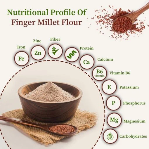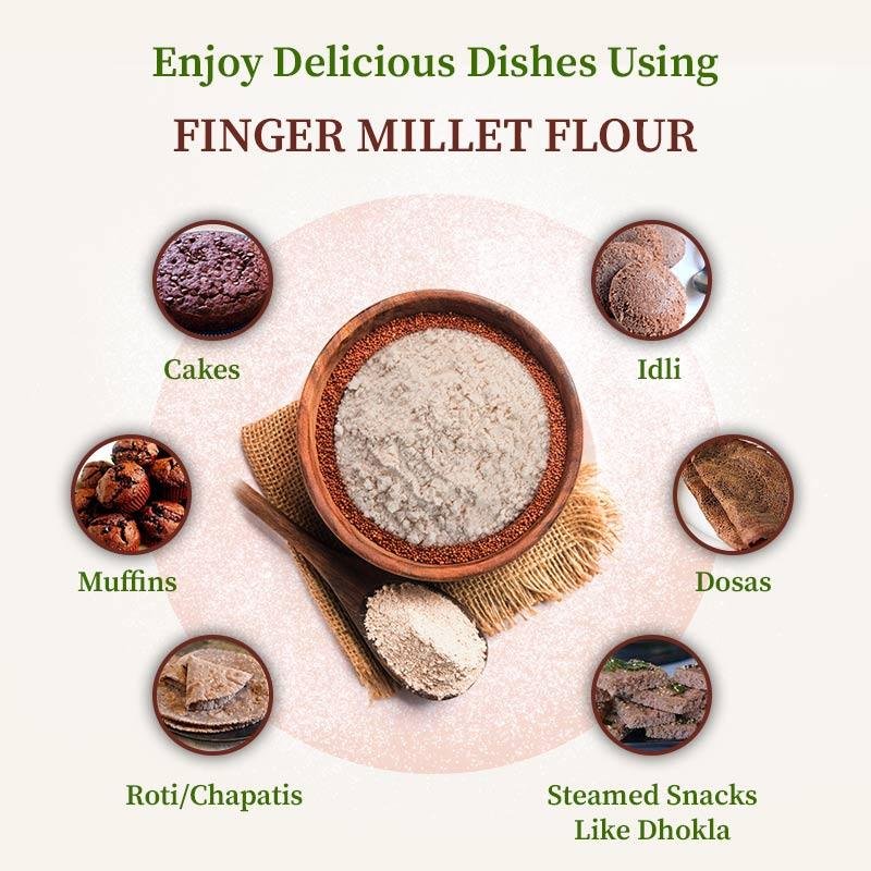 Finger millet flour, made from one of the minor cereals commonly called Raagi, is known for several health benefits attributed to its polyphenol and dietary fibre contents. It is an important staple food in India for health-conscious people. Nutritionally, its importance is well recognised because of its high content of calcium (0.38%), dietary fibre (18%) and phenolic compounds (0.3–3%). It is recognized for its health-beneficial effects, such as anti-diabetic, anti-tumorigenic, atherosclerogenic effects, and antioxidant and antimicrobial properties. Thus finger millet flour provides better health balance if added to your dietary plan.